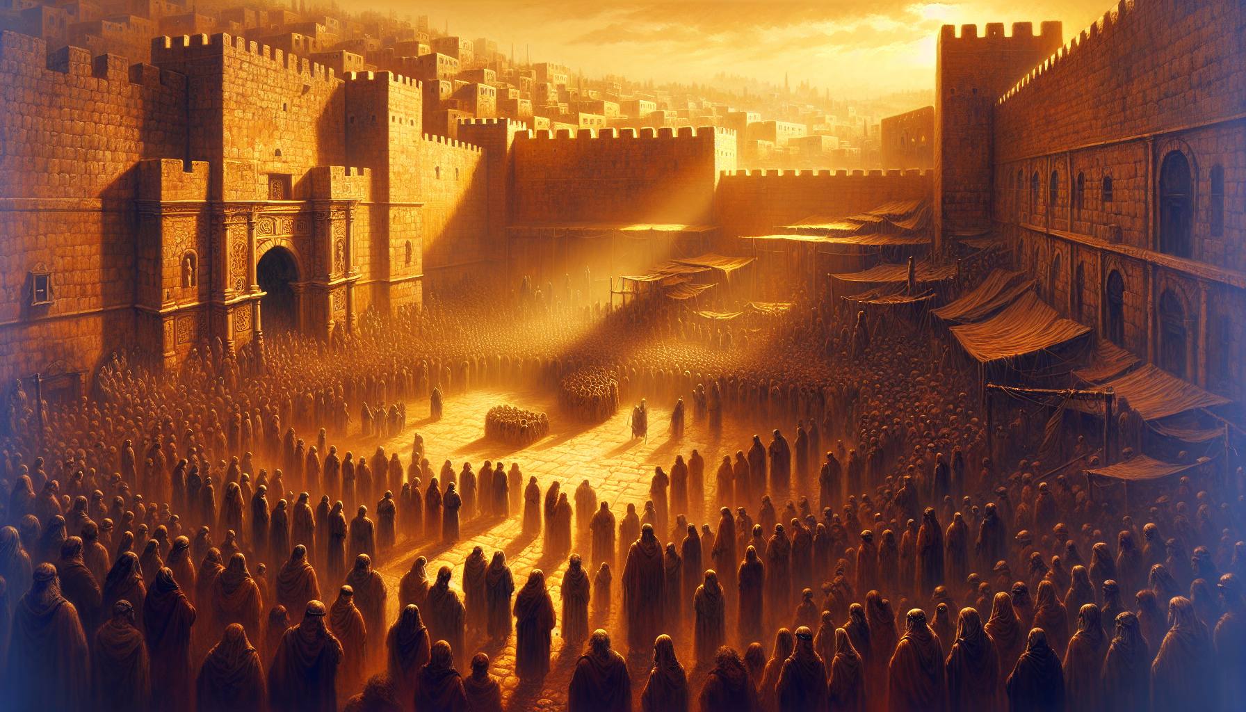 O sol da manhã fincava suas garras de calor sobre as pedras de Jerusalém, mas na praça diante do portão das Águas, ninguém parecia notar. O ar estava carregado de um peso diferente, mais denso que a poeira que subia…