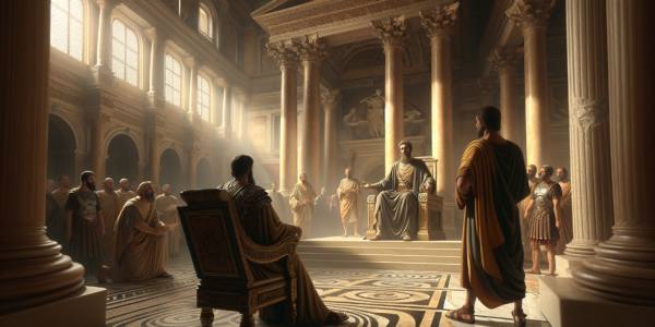 O sol da tarde mergulhava as ruas de Corinto numa luz dourada e poeirenta. Dentro da casa de Gálio, na sala ampla do andar superior, o ar estava carregado de algo mais espesso que o calor do fim de dia….