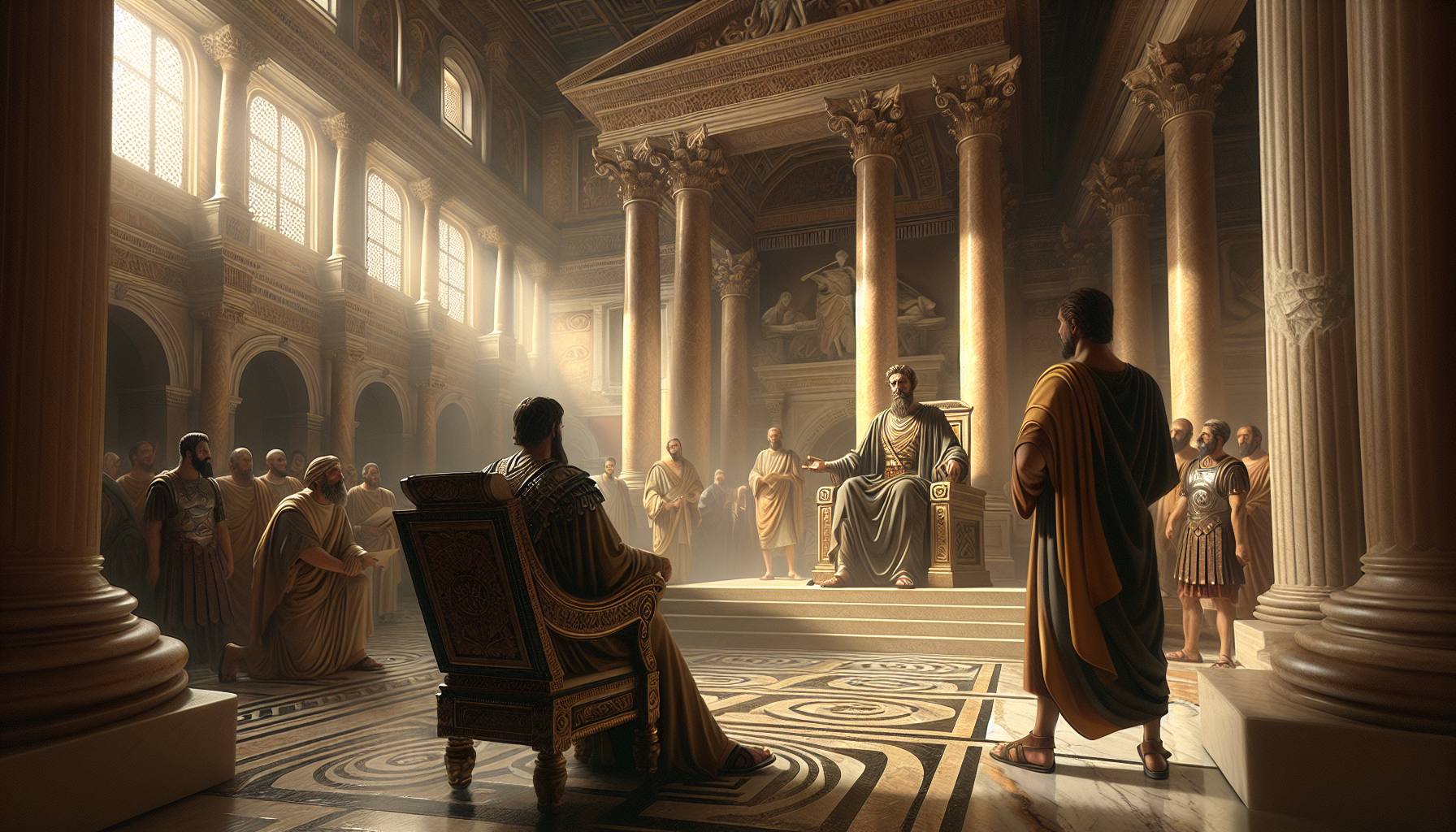 O mar de Cesareia cintilava sob um sol implacável, não com a placidez de um lago, mas com a fúria contida de águas profundas batendo contra o cais de Herodes. A brisa carregava o cheiro duplo de sal e poder….