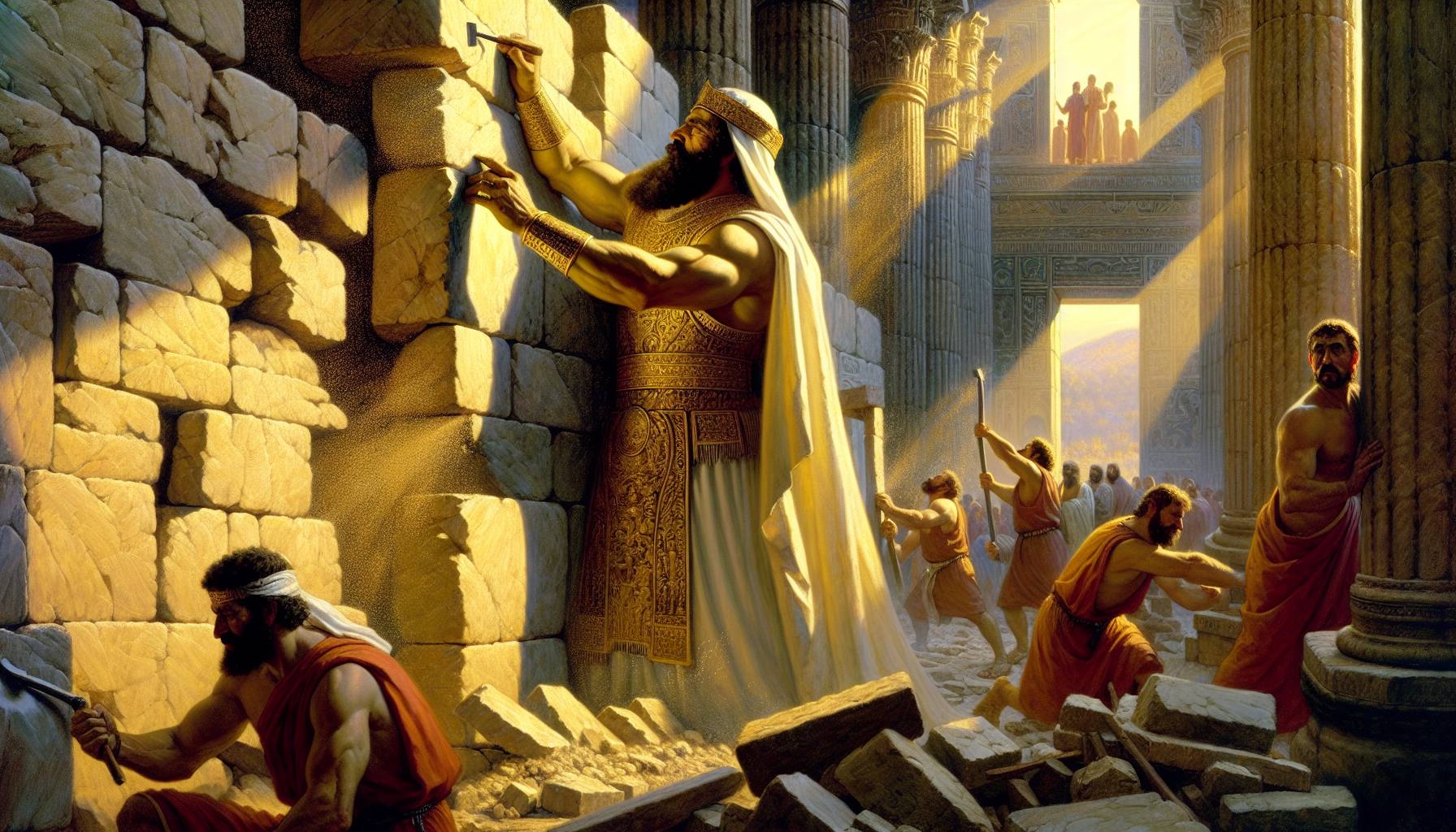 O sol da tarde poeirava de ouro velho as pedras desgastadas do pátio do Templo. Um vento morno, carregado do cheiro seco do deserto e das cinzas de sacrifícios antigos, agitava as farrapos de um cortinado que outrora fora púrpura….
