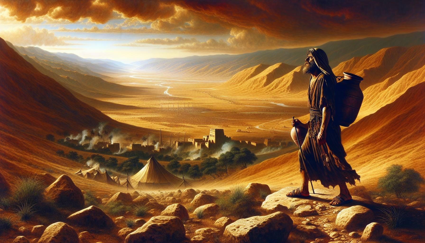 O sol da tarde descia sobre as colinas de Mizpá, alongando as sombras dos carvalhos como dedos trêmulos sobre a terra seca. O ar carregava ainda o cheiro da terra revolvida e das lágrimas recentes – um cheiro de arrependimento…