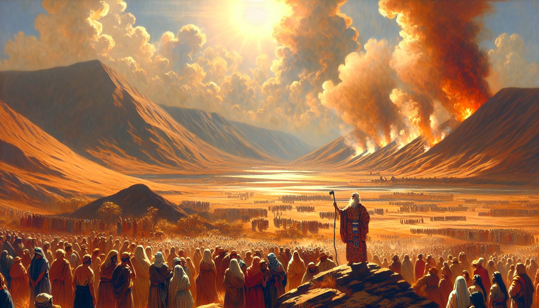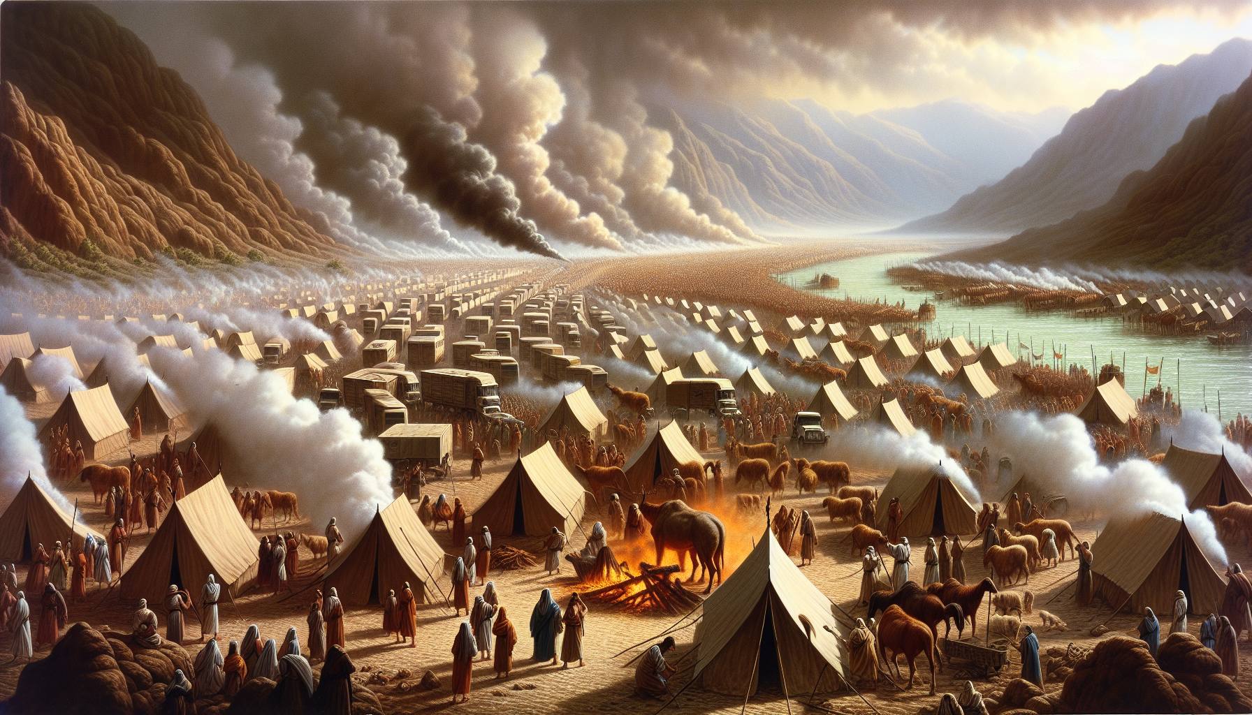 O sol da tarde era um disco de bronze derretido no céu, espremido entre as montanhas de Moabe. A poeira do acampamento, levantada pelo movimento constante de milhares de pés, pairou no ar como uma névoa dourada e áspera. Sentado…