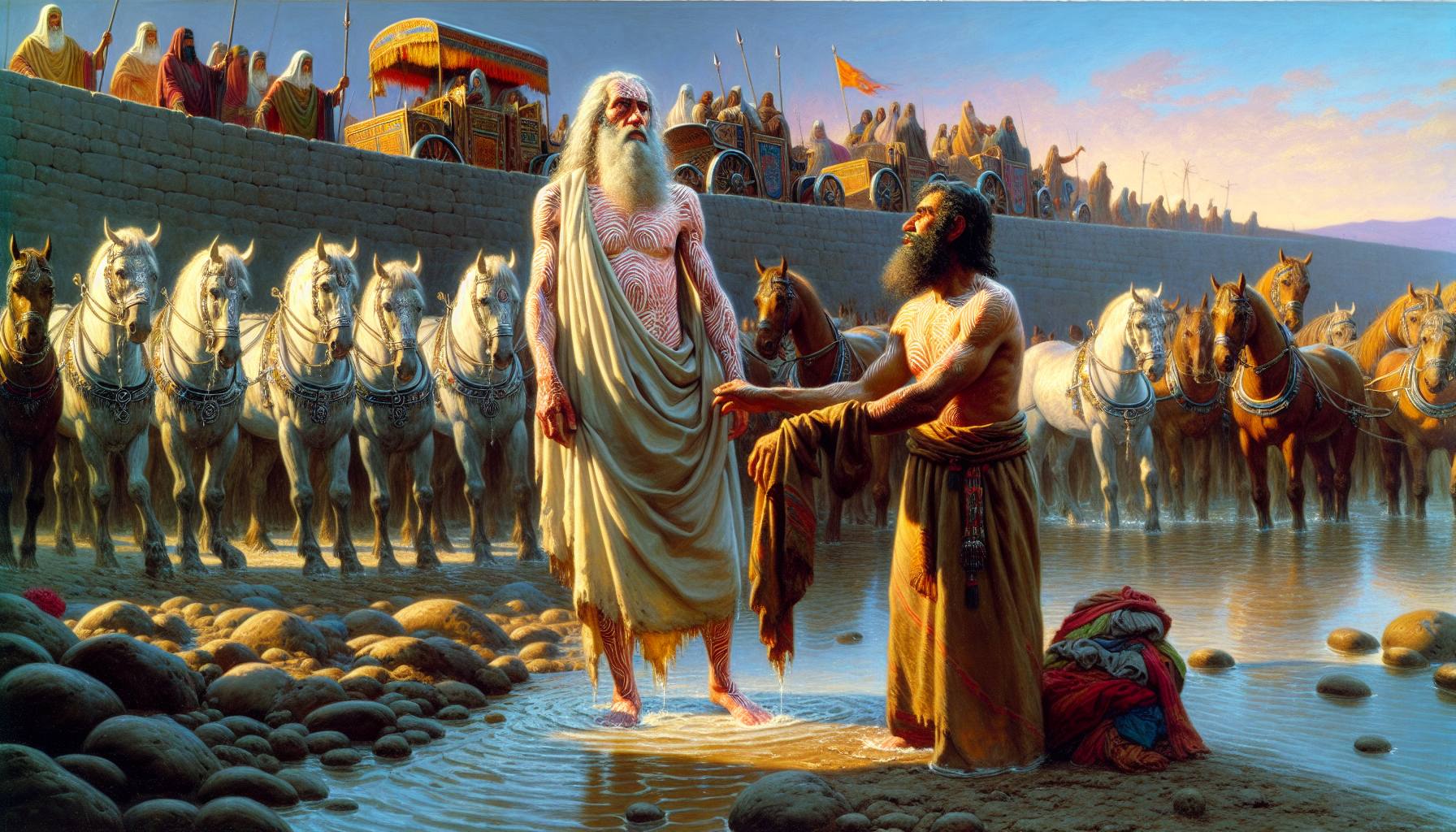 O sol da Síria caía como uma lâmina de bronze sobre Damasco, e Naamã, comandante do exército do rei, sentia seu peso nos ombros não como uma honra, mas como uma maldiça que se agarrava à sua pele. A lepra….