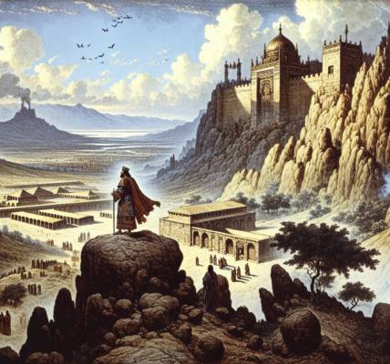No centro de tudo, elevava-se um **trono**—não como os tronos dos reis da terra, frágeis e passageiros, mas um assento de poder indescritível, flamejante em cores de jaspe e sardônio. O jaspe, translúcido como cristal, refletia a pureza absoluta de Deus, enquanto o vermelho do sardônio falava de Sua justiça consumidora. Ao redor do trono, um arco-íris reluzia em tons de esmeralda, lembrando a aliança eterna entre o Criador e Sua criação.