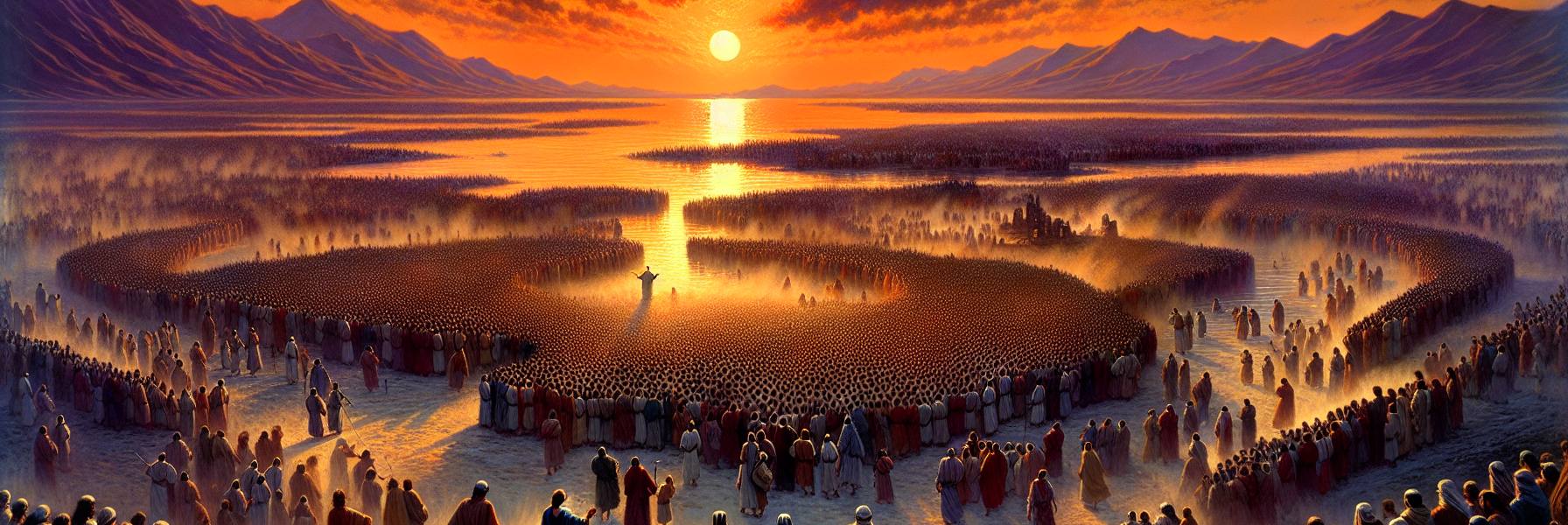 Foi nesse cenário que Jesus apareceu, vindo da direção de Cafarnaum. Não havia nada de espetacular em sua chegada — apenas um homem caminhando pela margem com seus discípulos, a poeira das sandálias misturando-se ao cascalho da praia. Mas multidões já o seguiam, vindas de Dalmanuta, de Gergesa, até mesmo da distante Cesareia de Filipe. Pessoas com olhos famintos por mais do que pão.