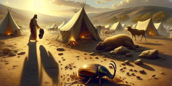 A tarde caía sobre o acampamento com um manto pesado de calor. O sol, como um brasido gigantesco, afundava atrás das montanhas de Moabe, tingindo de púrpura e ouro as tendas dispersas na planície. No centro do arraial, sentado sobre…