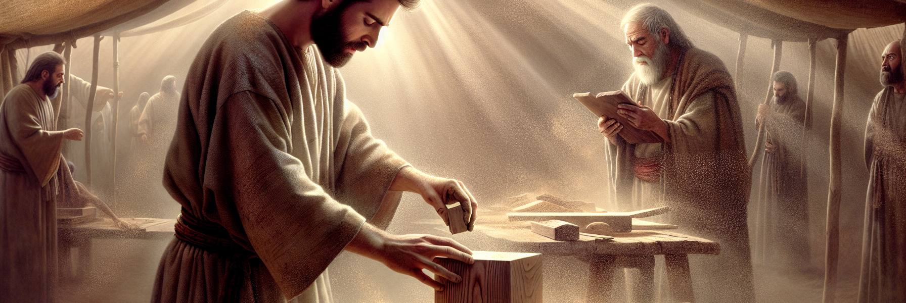 Madeira de acácia. Ele correu os dedos, calejados e finos de artífice, sobre a madeira clara e resistente que já tinha à disposição. Um cúbito de comprimento, um de largura, quadrado perfeito. A altura, dois cúbitos. Os chifres. Ah, os chifres. Não como os do altar do holocausto, que viam sangue e fogo. Estes seriam chifres de súplica, de fragrância, pontas salientes da mesma peça de madeira, talhadas com uma precisão que deveria sugerir força, não ferimento. Ele começou a lavrar, o som do cinzel um estalido seco e preciso no silêncio concentrado de sua tenda-oficina. A madeira ia se transformando, ganhando arestas sagradas sob suas mãos. Cada lasca que caía era um pensamento: este não seria um altar para expiação, mas para encontro.