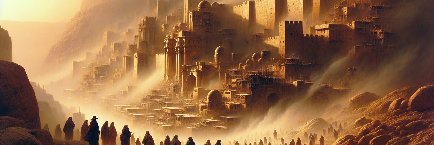 Esdras olhou para suas mãos empoeiradas, para suas vestes miseráveis. Roupas formosas? Ele quase riu, um som seco e amargo. Mas a voz não era de censura; era um chamado, um imperativo cheio de uma autoridade antiga. Era como se alguém sacudisse seus ombros após um sono longo e pesado. Ele se levantou, os joelhos rangendo, e olhou novamente para o monte. E, por um instante, não viu as ruínas. Viu uma promessa. Viu a cidade não como era, mas como seria: purificada, não mais pisada por pés incircuncisos, alvas como a neve no cimo do Hermom.