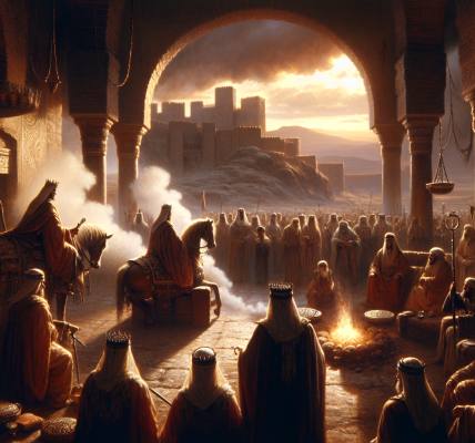 A terra cheirava a chuva velha e a raízes apodrecidas. Não a chuva que lavra, que alegra a terra ressequida, mas uma umidade constante, um suor do solo que subia como um vapor amargo. O ar pesava sobre os ombros de Noé, um manto úmido e espesso, enquanto ele afiava a lâmina de bronze no rebolo. O som áspero, ritmado, era a única oração que seus lábios sabiam fazer naqueles dias. Seus olhos, profundos como poços secos, contemplavam o vale onde sua família morava. Mais abaixo, manchas de fumaça suja marcavam os acampamentos dos filhos de Caim, onde o riso vinha em gritos e o metal já não era forjado para lavrar a terra, mas para coisas que faziam Noé cerrar os punhos.