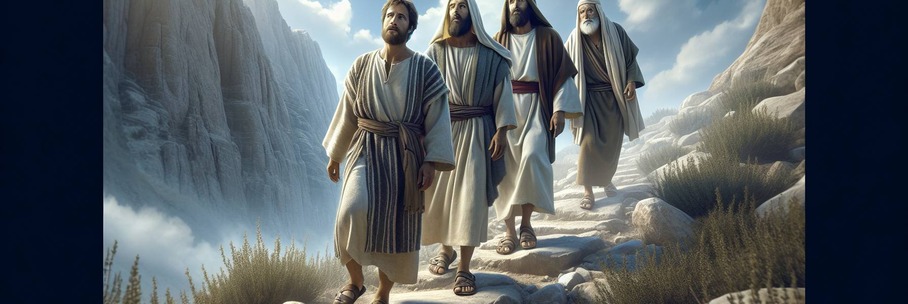 Decidiram parar ao pé de um monte, não muito alto, mas íngreme, de pedras nuas e arbustos retorcidos pela seca. O sol começava a se despedir, lançando sombras longas. Jesus então olhou para eles, e seu olhar pareceu passar por dentro de cada um, varrendo a poeira da vaidade. Sem uma palavra, apontou para o cume. “Fiquem aqui”, disse, sua voz era suave, mas não havia espaço para questionamento. “Você, Pedro, você, Tiago, e você, João. Venham comigo.”