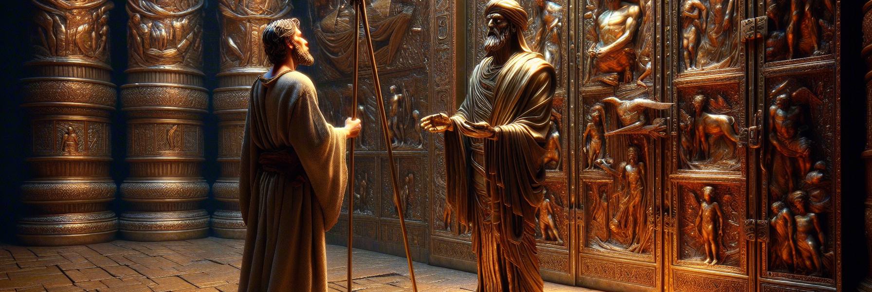 Ele, o homem de aparência como bronze polido, segurava em suas mãos uma corda de linho e uma vara de medir. Seus olhos não refletiam minha decepção. “Vem”, disse outra vez. E saímos pelo portão leste, aquele que olha para o deserto.