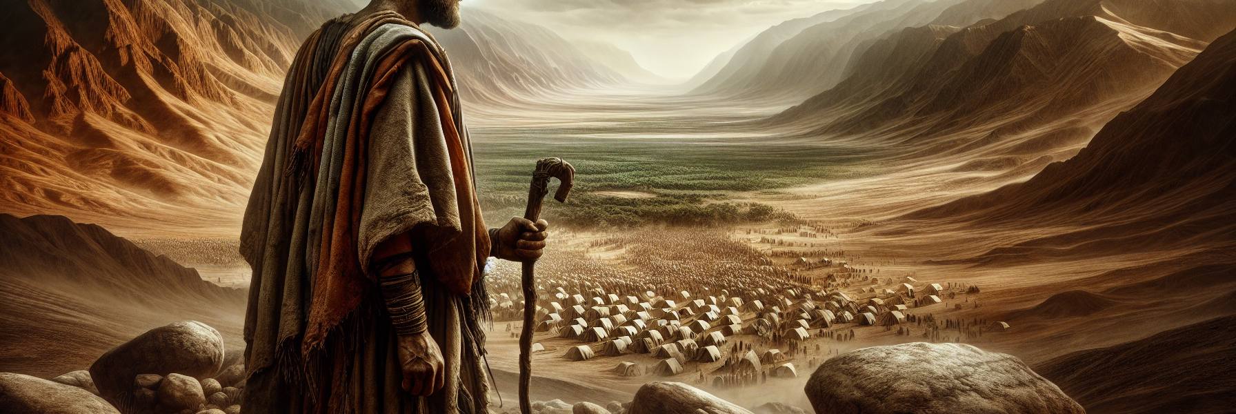 O sol da tarde lançava uma luz âmbar e poeirenta sobre a planície de Moabe. O calor do dia começava a ceder, mas um peso mais espesso, mais profundo que o calor, pairava sobre o acampamento de Israel. Era um peso de silêncio. O luto pelos trinta dias da morte de Moisés ainda impregnava as tendas, a fumaça das fogueiras e o olhar das pessoas. Um capítulo inteiro havia se fechado com aquele homem subindo o Nebo para nunca mais voltar. E agora, o que seria deles?