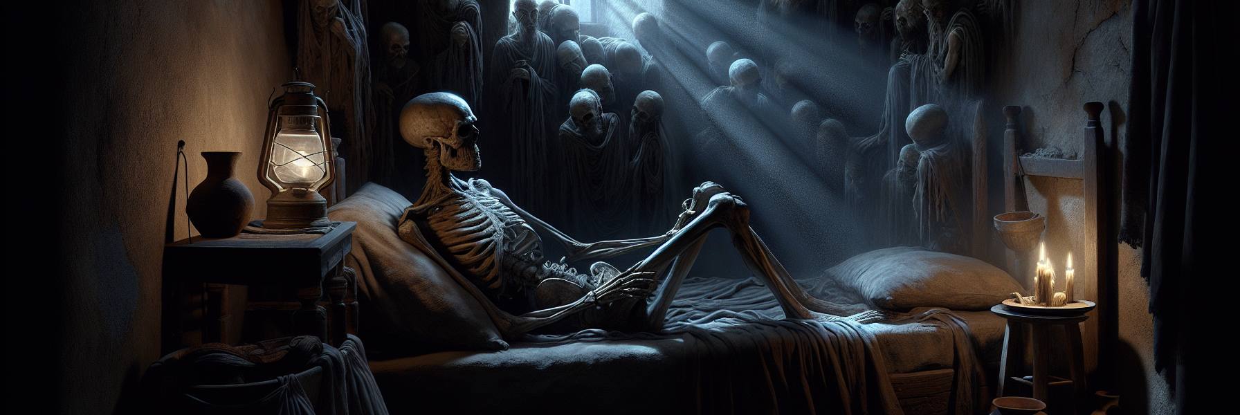 Mas à noite, quando a escuridão envolvia a cidade e o único som era o canto distante de um guarda, a memória vinha. Era uma sombra fria que se insinuava pelo quarto, mais real que o mobiliário. Ezequiel fechava os olhos e via novamente a cama, a mesma onde agora repousava, mas ocupada por um peso terrível e silencioso. A doença o atingira não como um furacão, mas como um lento e meticuloso cerco. Fora definhando, dia após dia, sentindo a força escorrer de seus membros como areia de um odre furado. A febre era um fogo baixo e persistente que consumia sua substância. Os médicos balançavam a cabeça, com palavras suaves e olhos cheios de um fatalismo resignado. Os amigos, inicialmente solícitos, tornaram-se visitas raras, até que sua casa ficou em um silêncio que parecia o próprio ante-sabor da sepultura.