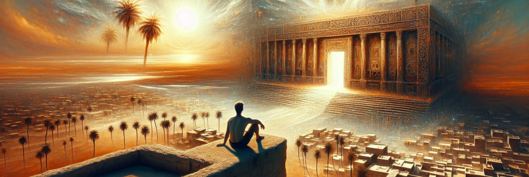 Não como um sonho, mas como uma cena imposta, vívida e cruel. Um nome ecoou primeiro em seu íntimo, seco como o estalar de um ramo no deserto: “Babilônia”. E diante de seus olhos abertos, a planície desdobrou-se. Não a Babilônia das torres e jardins suspensos que os mercadores descreviam, mas uma Babilônia essencial, uma ideia feita de pó e pavor.