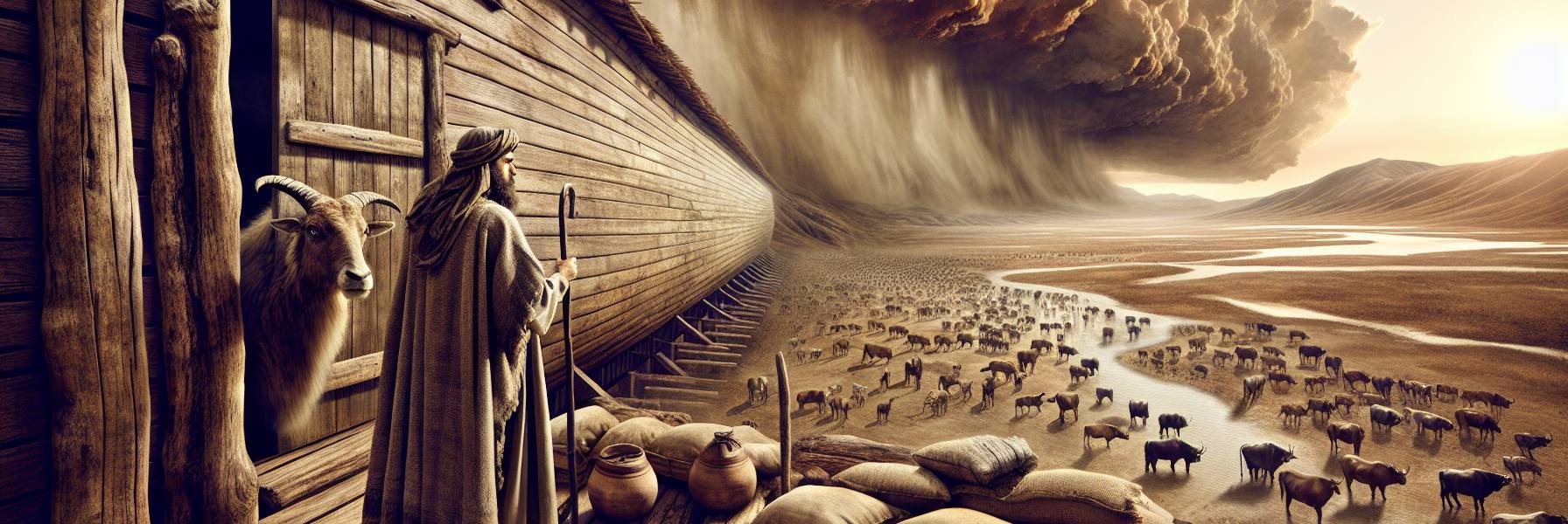 Naquela manhã, o silêncio era diferente. Não era a ausência de sons, mas uma contenção, como se o mundo prendesse a respiração. Os pássaros não cantavam, só voavam em círculos baixos e desorientados. Noé caminhou até a enorme porta lateral, suas mãos calejadas passando sobre a madeira resinosa. A orientação tinha sido precisa: ele, sua mulher, seus três filhos e as noras. E os animais.