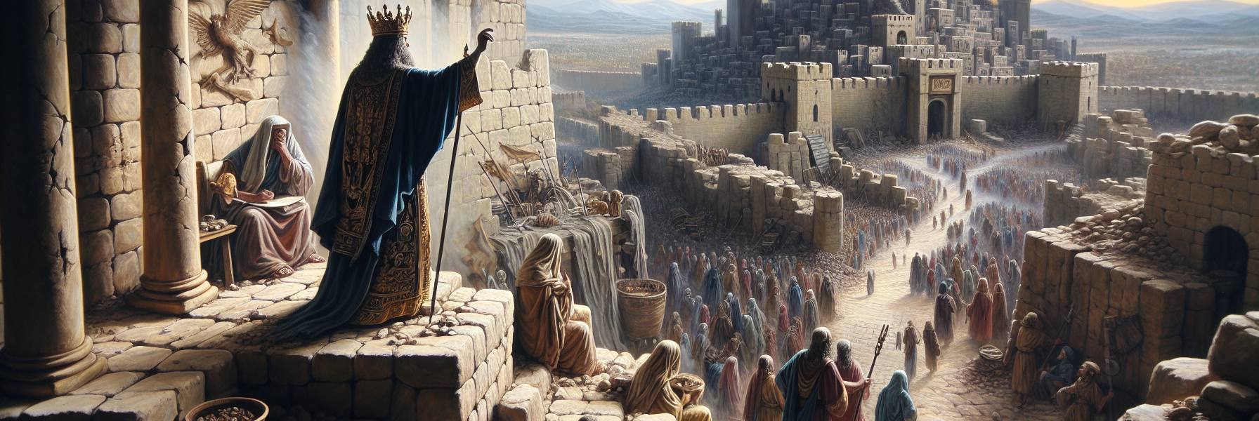 No palácio, o rei Zedequias, nono soberano de Judá após Josias, seu justo pai, vivia um tormento próprio. Seus olhos, herdados da linhagem de Davi, já não viam tronos, mas pesadelos. O conselho dos profetas de baixo preço, que sussurravam promessas de intervenção divina, soava agora como o zurrar dos jumentos mortos nas ruas. Ele se lembrava das palavras ásperas de Jeremias, rejeitadas, enterradas no fundo do pátio. Lembrava do pacto quebrantado. À noite, o ranger das máquinas de cerco babilônicas era o som da própria Lei sendo quebrada, pedra por pedra.