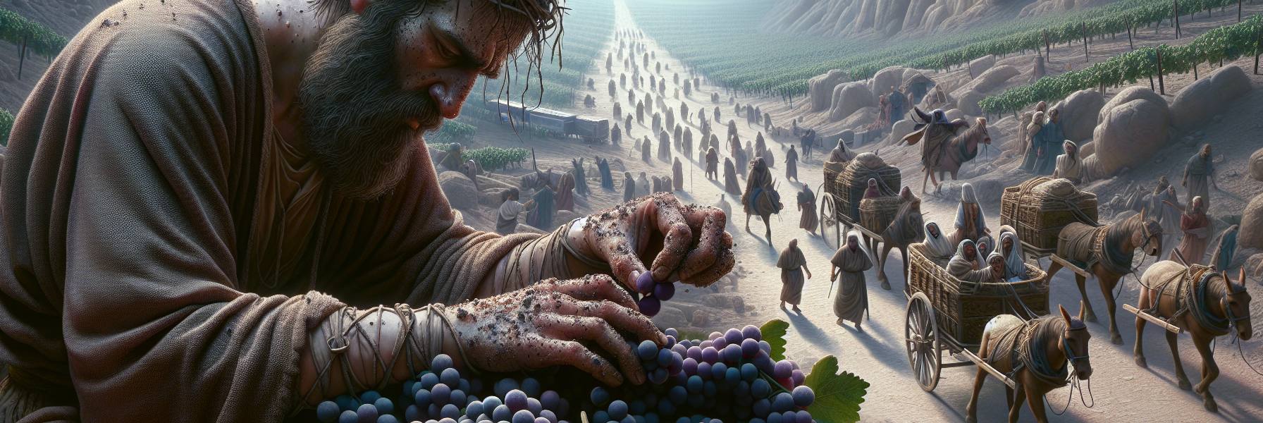 Parou à entrada de uma praça. Ali, sob uma figueira raquítica, um grupo de homens conversava. Um deles, de rosto largo e mãos calejadas de pedreiro, falava com voz carregada de indignação. “…e eu te digo, Malchias, foi ele quem falou ao capitão da guarda. Para ficar com a minha vinha em Anatote. Falsas testemunhas! Tudo armado!” Jeremias se aproximou, um fio de esperança tolo brotando em seu espírito. Talvez houvesse justiça. Talvez o clamor fosse por equidade. O outro homem, Malchias, pôs a mão no ombro do pedreiro, seu rosto uma máscara de solene compaixão. “Irmão, que tragédia. Homem algum deveria passar por isso.” Sua voz era um mel escorrendo, suave e pegajoso. “Vamos resolver isso. Vem à minha casa ao pôr do sol. Traze os documentos. Buscaremos a verdade juntos.” O pedreiro, aliviado, agradeceu com lágrimas nos olhos. Malchias virou-se para outro companheiro, e um sorriso rápido, um brilho de pura satisfação, cruzou seu rosto antes que a máscara da seriedade retornasse. Era um relâmpago. Mas Jeremias viu. Viu o laço sendo armado, a mentira vestindo a túnica da piedade.