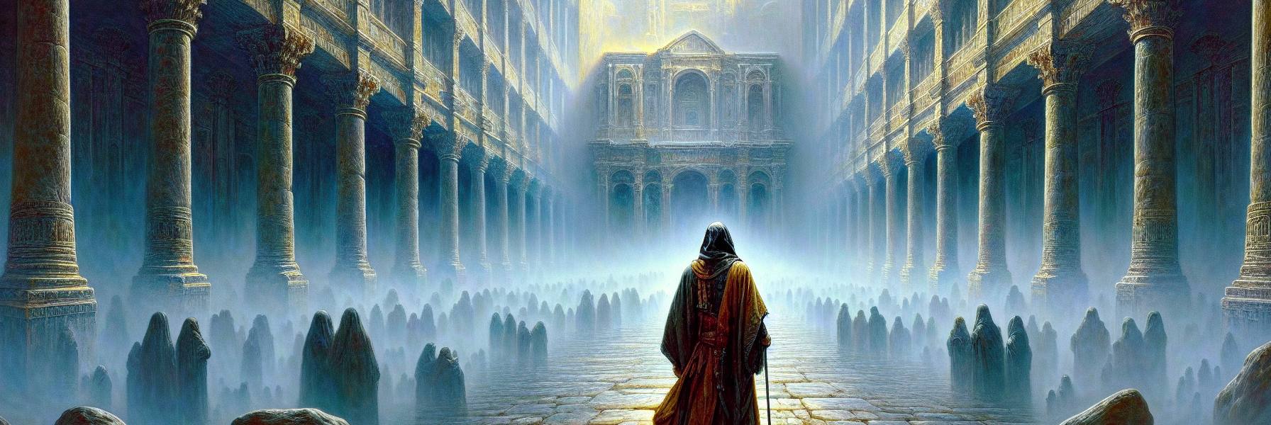 O ar dentro do que restava do templo era pesado, não com incenso, mas com o pó de milhares de pedras deslocadas e a poeira seca da desolação. Zorobabel, o governador, estava lá fora, discutindo com os mestres de obras sobre o alinhamento de um novo alicerce, sua voz áspera ecoando entre os escombros. Mas Zacarias, filho de Baraquias, filho de Ido, o profeta, se afastara daquela agitação. Um cansaço profundo, não apenas do corpo, mas da alma, o levou para a sombra de uma antiga arcada carbonizada. Ele orava, mas as palavras não vinham; eram apenas gemidos mudos, um lamento pelo esplendor perdido, pela glória que parecia uma miragem diante da realidade áspera do retorno.