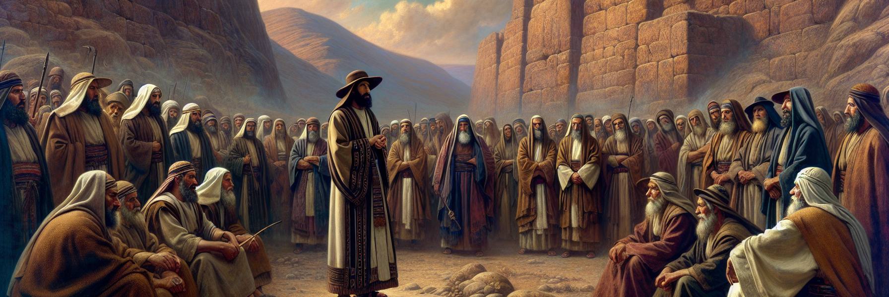 O sol da tarde era quente e pesado sobre o vale de Siquém, carregando o perfume misturado da terra seca, do poeirão levantado pelos pés de milhares, e do verde teimoso dos carvalhos que sombreavam a encosta. Aquele não era um dia comum. Uma multidão se aglomerava, não em ordem militar, mas como uma vasta família estendida – homens de faces curtidas pelo deserto e por batalhas, mulheres de olhos sábios que haviam visto escravidão e liberdade, crianças que corriam entre as pernas dos adultos, inquietas, sentindo a gravidade do momento sem compreendê-la por inteiro.