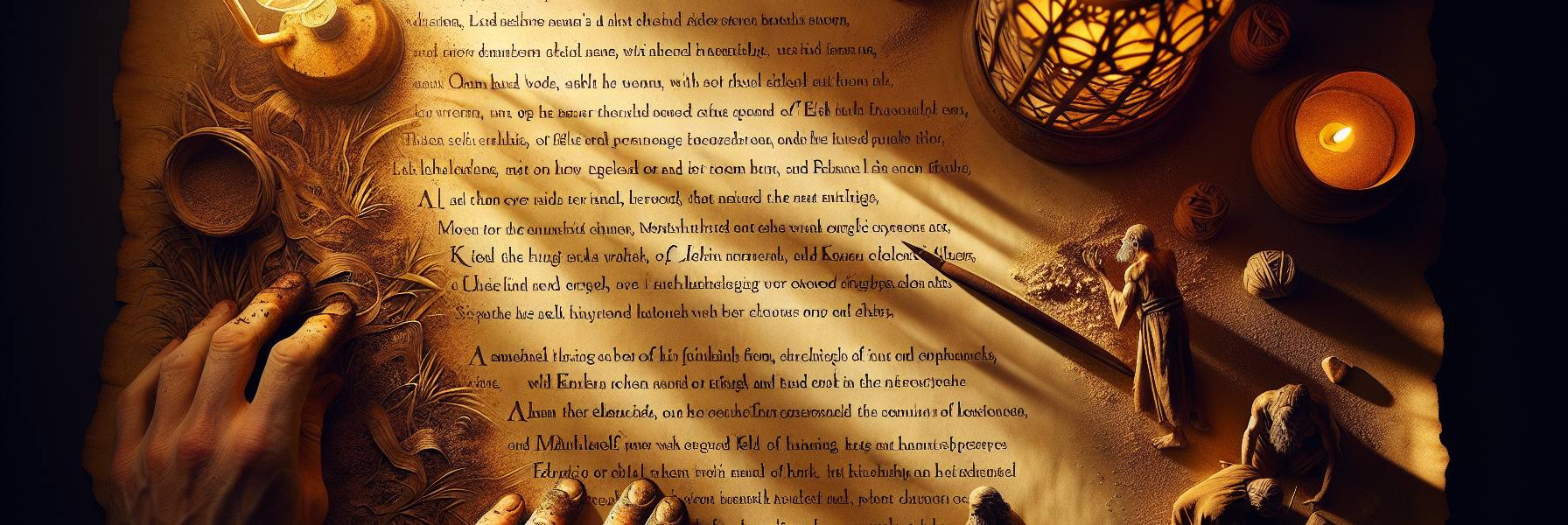 O ar na sala de escrita era espesso, pesado com o cheiro de pergaminho envelhecido, pó de carvão e cera de abelha derretida. Ezra inclinou-se sobre a pele de cabra esticada, os olhos ardendo após horas de trabalho à luz trêmula da lâmpada de azeite. A chama dançava, projetando sombras que pareciam dançar também sobre os nomes que ele traçava com mão cuidadosa. Fora, o som noturno de Jerusalém era um sussurro distante; dentro, apenas o arranhar de sua pena e o peso imenso dos nomes.