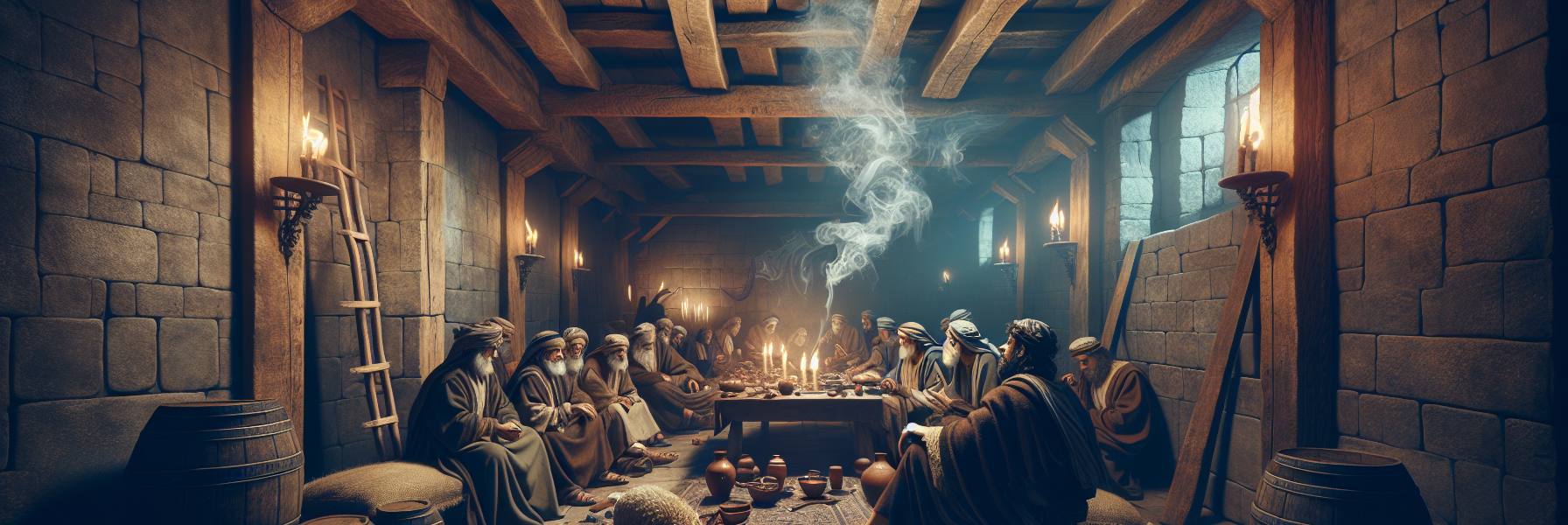 A noite em Jerusalém descia com uma certa preguiça, daquela que só existe quando a Páscoa se aproxima e o ar ainda guarda o último calor do dia. Dentro da casa, porém, o ar era pesado, carregado de algo que ia muito além do cheiro de pão ázimo e de cordeiro assado. Era uma opressão silenciosa, um pressentimento que se instalara no peito de cada um dos homens reunidos à mesa.