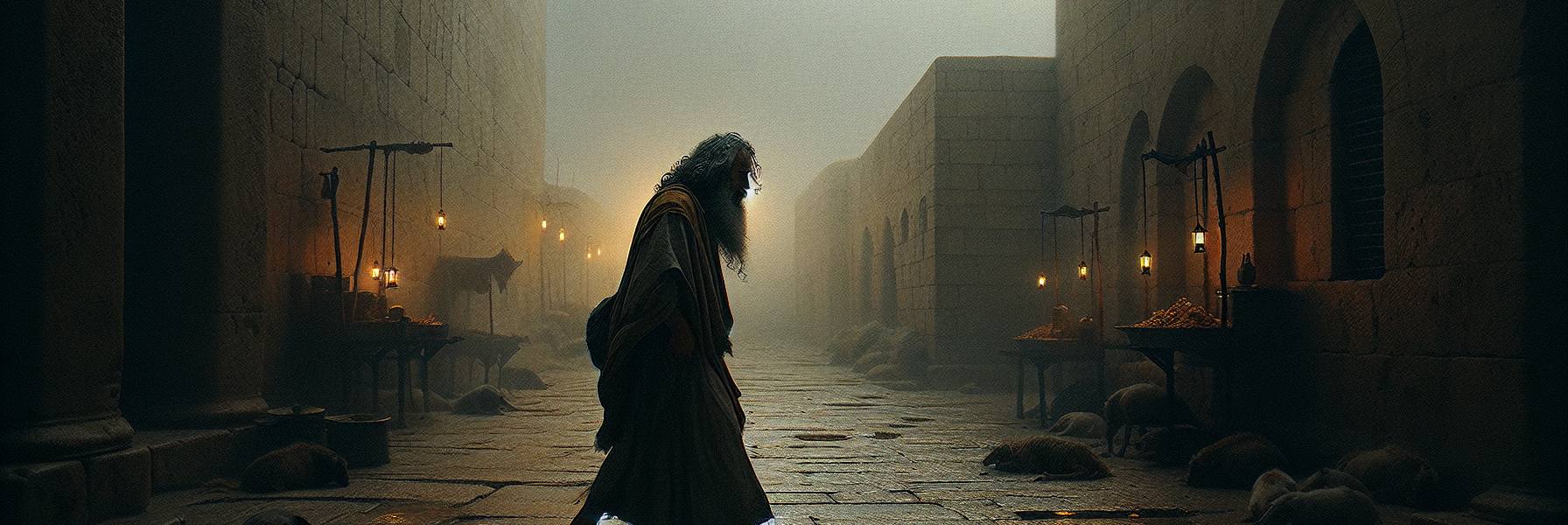 Foi nesse crepúsculo de fé morna que a palavra veio. Não como um trovão, mas como uma convicção súbita e ardente que se instalou no peito de um homem, um dos levitas mais velhos, de nome esquecido pelos registros mas gravado na essência da mensagem. A tradição mais tarde o chamaria de Malaquias, “meu mensageiro”. Para Eliasber, naquele momento, ele era apenas o velho Obadias, de voz rouca e olhos que, de repente, pareciam refletir um fogo que não era deste mundo.
