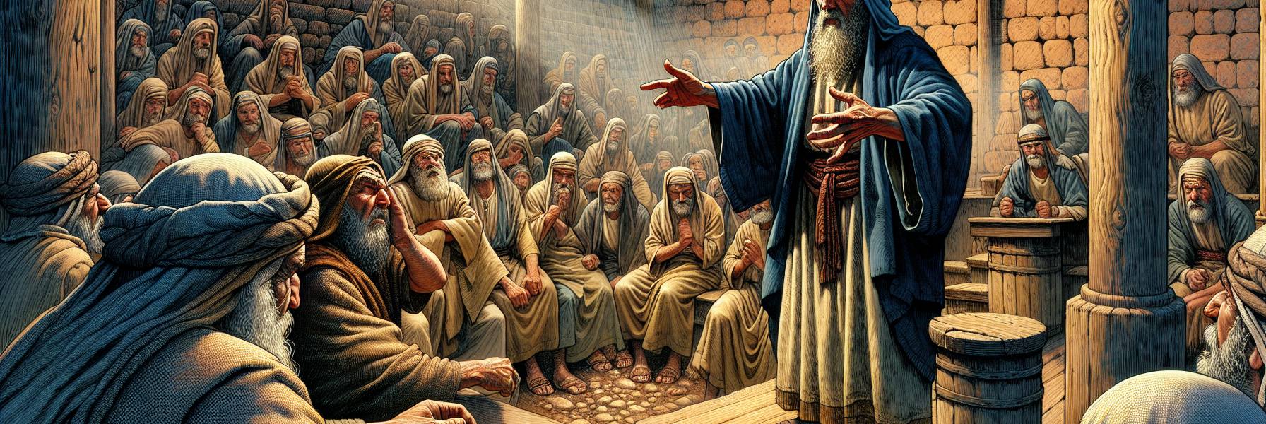 Foi na manhã seguinte, enquanto contabilizava prejuízos com a mente turva pela insônia, que Simeão apareceu à porta. Não era um profeta de praça pública, nem um fariseu de vestes bordadas. Era um homem simples, de rosto marcado pelo sol e pelas preocupações, mas com uns olhos que pareciam ver para além das prateleiras e dos sacos de moedas.